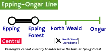 ![]() Services extend only as far as Stonards Hill, although it is planned to extend the line to a new station at Epping. | |