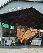 Equator initially sat under a makeshift structure that was exposed on all sides, leaving her exposed to the elements.[7] Eventually her back side collapsed in November 2017, which led the Port of Everett to enclose the shelter around the schooner to protect her from further decay.[5] Equator remains in a fragile state as she can't be moved or preserved in place, to complicate matters more she is also described as an "orphan" with no legal owner.[5][7] There is currently a makeshift open air museum in place for Equator, which includes the National Register plaque and an interpretive sign, as well as a list of donors to the Equator Foundation.[3]