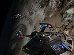 In this installment, they encounter another Starfleet starship, the USS Equinox also stranded in the Delta Quadrant. This was presented in two parts, but aired several months apart, with part one airing on UPN on May 26, 1999 and the conclusion on September 22, 1999.