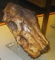 Equus sivalensis is an extinct species of large equid native to the northern Indian subcontinent. Remains date from the beginning of the Pleistocene, c. 2.58 million years ago until around 600,000 years ago, during the Middle Pleistocene. It is considered a "stenonine horse", meaning that it is more closely related to zebras and asses than true horses. Based on isotopes and teeth morphology, it is thought to have been a grazer.[1] The later species Equus namadicus from the same region has sometimes been suggested to be a synonym due to their similar teeth morphology.[2]