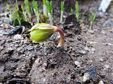 The Latin specific epithet hyemalis means "winter-flowering",[4] while the name of the genus is a compound of the Greek elements Er 'Spring' and anthos 'flower' - so named for its early flowering.[5]