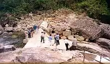 Kuru Ganga leaves the peak wilderness sanctuary at an elevation of 1030 m AMSL and flows steeply westwards until it reaches the village of Adavikanda at an elevation of 400 m AMSL. Close to the pilgrim's rest called “Maha Ambalama” forms the “Manna-Kethi” falls from elevation 860 m to 840 m. Thereafter flows on steeply exposed bedrock to an elevation of 600 m. The riverbed below this level is covered with large boulders and banks with thick vegetation.[5][6]