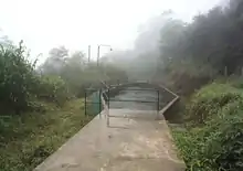 The forebay is located on a hill slope of bedrock and it is a reinforced concrete structure. The forebay incorporates a spillway and a trash rack. The forebay spillway is specially designed considering less environmental impacts by directing the water spill to a natural water path and it discharges 3 m³/s. The forebay is designed to have a steady flow to penstock avoiding turbulence and vortex. The elevation of water is maintained automatically with the level sensors with the machine operation.[5][6]