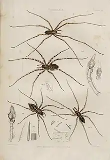 Eratigena atrica was transferred from the genus Tegenaria in 2013. It was considered the same species as Eratigena atrica until 2018, when Eratigena duellica, Eratigena saeva, and Eratigena atrica were restored as separate species.[3][4]