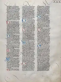 The "new" Wolfenbüttel fragments and the Zwettl fragments adhere much more closely to Chrétien's original than the text of Erec represented in the other manuscripts (including the "old" Wolfenbüttel fragments). A number of characteristics set these most recently discovered fragments apart from the established text of Erec: more accurate, sometimes word-for-word translation of the Old French,[17] a much greater prevalence of French loanwords in the German text (some not found elsewhere in MHG),[18] and a number of triplet rhymes.[19] For these reasons, the fragments are taken to provide evidence of a distinct German version of Chrétien's poem, called, on the basis of their dialect, the "Central German Erec" (German: Der mitteldeutsche "Erec"), or simply the "Second Erec"[20] With the "old" Wolfenbüttel fragments matching Hartmann's text and the "new" representing a different version, it is unclear why the scribe of this manuscript switched source in the middle of the text,[21] and the relation between this version of Erec and Hartmann's remains a matter of debate.[22][23]