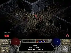 Multiplayer is available up to four players. Multiplayer characters' states are saved periodically. Players can either be aggressive towards, or play co-operatively with, other players. Players can connect direct connection, modem connection, Battle.net connection or IPX network connection. The game lacks the stronger anti-cheating methods of Blizzard's later games and as a result, many characters online have been altered in various ways by common third-party programs known as trainers and/or game editing programs such as Cheat Engine.[12][14]