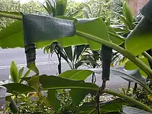 The rolls in banana leaves that E. thrax larvae create when feeding have been used as overwintering shelters for wasp species Polistes japonicus in Okinawa, Japan.[3][4]