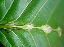 | Mature midrib galls on an alder leaf | |