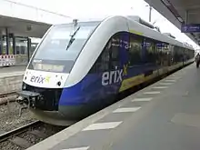 Erixx GmbH (stylized as erixx) is a private railway company operating regional train service in Lower Saxony and Bremen, northern Germany. It is wholly owned by Osthannoversche Eisenbahnen AG (OHE). Since 11 December 2011, Erixx operates on behalf of the public transport company of Lower Saxony (Landesnahverkehrsgesellschaft Niedersachsen - LNVG). The name is derived from Erica, the genus of heath plants, and "x", representing the Heidekreuz (heath cross), the services it operated over the Lüneburg Heath until 2021.