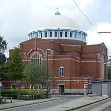 Ernest Bower Norris, FRIBA was a prolific architect practising mostly in the north-west of England. His style fused modern, traditional and international influences, although in his ecclesiastical work he often favoured neo-byzantine or romanesque. A review of his work published in 1938 said that he had designed 80 schools and over 40 churches.[2] At this stage he was mid-career and continued practising for a further 30 years. His buildings are predominantly brick, although often with steel or concrete structural support.