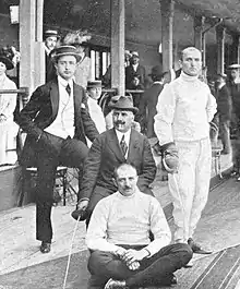 Despite suffering from a chronic eye disease, Königsgarten had a distinguished fencing career.[14] He fought left-handed with the foil and épée, but right-handed with his best weapon, the sabre. In 1906, at age 25, he was the youngest member of the Austrian team in the Olympic 1906 Intercalated Games in Athens in four competitions and finished sixth with the sabre. In 1907 he was one of the co-founders of the Wiener Fechtklub (Vienna Fencing Club), trained in the fencing academy of Luigi Della Santa and sat on the board of the Austrian Fencing Association and the Wiener AC.[15][16]