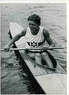 Ernst Krebs (4 November 1906 – 20 July 1970) was a German sprint canoeist, born in Munich. At the 1936 Summer Olympics, he won the gold medal in the K-1 10000 m event. This event took place on Friday 7 August 1936, at 5:10 pm. In total including himself, there were 15 participants representing 15 countries for the one-seater kayak race. Krebs won gold with a time of 46:01.6. The silver medal went to Fritz Landertinger, of Austria, with a time of 46.14.7 and the bronze medal went to Ernst Riedel, of the U.S.A., with a time of 47.23.9. The electric timing apparatus of the firm of Lòbner was used for time-keeping and there were four timekeepers at the finish line.[1]