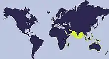 This species occurs in the northern Indian Ocean (see range map) on the coasts of Mozambique, Persian Gulf, Gulf of Oman, southern India, Maldives, Sri Lanka, up to Thailand, southern Java and Melanesia.