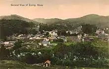Subsequently, Erving was first settled by white settlers in 1801 and officially incorporated—it being nearly the last unincorporated land in Massachusetts—in 1838. What is now Erving was once the farm of John Erving, the first colonial in the area. Noted in the 19th century for timber and grazing, the town had seven sawmills, two chair factories, one pail factory, one children's carriage factory, and one bit-brace factory. Large numbers of railroad ties and telegraph poles were cut in the abundant forests here, as many as 1,495,000 in one year.[4] Today, Erving has a school, a police and fire department, public library, several small stores and restaurants.