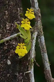 Its quick development permits this orchid to grow on relatively short-lasting sites such as twigs or even leaves of bushes and trees, such as coffee plant or hibiscus.[3] For this reason, it is usually classified as a twig epiphyte.