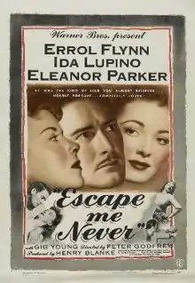 Escape Me Never is a 1947 American melodrama film directed by Peter Godfrey and starring Errol Flynn, Ida Lupino, Eleanor Parker, and Gig Young.[3]