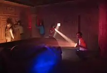 Different attractions contained elements similar to modern escape rooms and could thus be seen as precursors to the idea, including haunted houses, scavenger hunts, entertainment center 5 Wits or interactive theater (such as Sleep No More, inaugurated in 2003).[13]