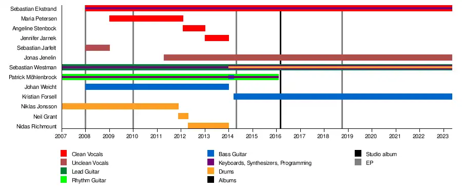 - Sebastian Ekstrand – clean vocals, keyboards, programming (2008–present)