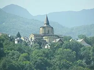 Bernard I d'Escors was an abbot of Saint Savin-en Lavedan's Abbey and the oldest documented member Saint-Savin-En-Lavedan (940-946), Bernard I d'Escors.[27][28][29] The Abbey of Saint Savin-en-Lavedan is a benedictine monastery built during Charlemange's conquests in the South of France, in the County of Bigorre (Duchy of Aquitaine). It is still present in Saint Savin-en-Lavedan after a major restoration that took place in 1855. It is unclear whether Bernard I d'Escors was the first Abbot from 940-944 AD as it appears in some documents, or even if he was a member of the clergy.[27][28][29] In the Saint Savin-en Lavedan's Meillon and Duriers' cartulaires, he is not listed as the first Abbot, and they even raise doubts about his existence. However, it is known that Bernard was possibly associated to the Abbey from 945-957 AD through records of his various donations in favour of the Convent.[30]