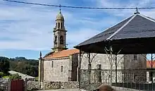 ![]() View from the church. On the left an hórreo, a traditional Galician granary can be seen. |