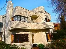 The Windermere flats at 49 Broadway, Elwood, were built in 1936. This celebrated block of flats in the Moderne style, with a dynamic interplay or horizontals, verticals and projecting curved balconies, creating a striking street presence, is one of the earliest Moderne flats added to the Victorian Heritage Register, in 1992.[8]