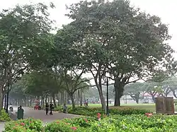 ![]() Esplanade Park, Singapore. The pedestrian promenade on the left is Queen Elizabeth Walk. The plaque on the right, erected by the National Heritage Board, marks the former Indian National Army Monument site. | |