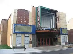Esquire Theater is a historic movie theater located at Cape Girardeau, Missouri. It was built in 1946–1947, and is a two-story, brick building with a colorful Art Deco facade. The building measures approximately 100 feet by 60 feet. It features a projecting marquee with neon tube lights; a streamlined, curving entrance and ticket booth; a projecting proscenium-like arch; and embellishments including enameled and stainless steel, structural pigmented glass, marble and glass blocks.[2]: 5