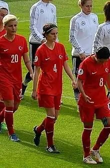 On February 26, 2015, she took part in the friendly game of the Turkey women's team against Georgia.[6][9] She played at the UEFA Women's Euro 2017 qualifying Group 5 matches for Turkey.[10]