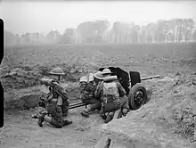 During the conversion, surplus personnel were formed into 'R' Company, Essex Regiment, which soon afterwards was designated as V Corps HQ Defence Company.[60] On formation, 153 RAC joined 34th Army Tank Brigade, with which it fought in Normandy, alongside 107 RAC and 147 RAC. However, 153 RAC was disbanded on 28 August 1944, due to a severe shortage of manpower, to be used as replacements for other British tank units in the 21st Army Group.[61]