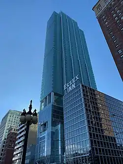 In November 2014, Oxford Capital Group LLC acquired the 254-room Essex Inn at 800 South Michigan, along the Historic Michigan Boulevard District across from Grant Park, from the Gecht family who built the hotel in 1961.[1] Oxford acquired the property, which sits atop a ground lease that runs until 2057, for $25.5 million.[2] By September 2015, Oxford submitted plans to replace the parking garage and swimming pool next to the Essex Inn with a 48-story apartment tower hosting 388 units.[3] The plan was modified during 2016, removing proposed open air bars between the lower and upper levels.[4] On January 3, 2017, Oxford Capital Group received a $170 million construction loan.[5] On January 19, 2017, Oxford broke ground on the new plan, which at the time proposed a 57-story 476-apartments and 290-hotel room development next to the Essex Inn.[4] Preleasing began on December 28, 2018 for the new building, which was considered completed at the time.[6] On March 1, 2019,[7] the 56-story apartment tower opened and the 14-story/274-room Hotel Essex, which was newly renovated from the shell of the Essex Inn, opened on April 1, 2019.[8]