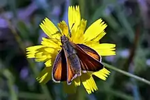 Thymelicus lineola, known in Europe as the Essex skipper and in North America as the European skipper, is a species of butterfly in the family Hesperiidae.