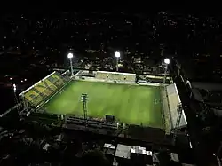 When some of the wooden stands broke during a match vs River Plate in 2016 causing three Defensa y Justicia supporters fell, the stadium was closed for safety reasons.[5] To solve the problem, the club signed a contract for the total renovation of the grandstands in that sector.[1] The new stands were inaugurated on August 26, 2017 in a match vs Gimnasia y Esgrima LP. In order to participate in international competitions (such as Copa Sudamericana and Copa Libertadores), Defensa y Justicia signed an agreement with Brightness LLC company for the installation of a new LED lighting system.[6] The light towers were inaugurated in January 2020 in a match vs Talleres de Córdoba.