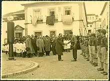 The corporatist constitution was approved in the national Portuguese constitutional referendum of 19 March 1933.[23][26] A draft had been published one year before, and the public was invited to state any objections in the press.[26] These tended to stay in the realm of generalities and only a handful of people, less than 6,000, voted against the new constitution. [26] The new constitution was approved with 99.5% of the vote, but with 488,840 abstentions[26] (in a registered electorate of 1,330,258) counting as "yes".[27] Hugh Kay points out that the large number of abstentions might be attributable to the fact that voters were presented with a package deal to which they had to say "yes" or "no" with no opportunity to accept one clause and reject another.[26] In this referendum, women were allowed to vote for the first time in Portugal. Their right to vote had not been obtained during the First Republic, despite feminist efforts, and even in the referendum vote, secondary education was a requirement for female voters, whereas males only needed to be able to read and write.[28] The right for women to vote was later broadened twice under the Estado Novo. The first time was in 1946 and the second time in 1968 under Marcelo Caetano, law 2137 proclaimed the equality of men and women for electoral purposes. The 1968 electoral law did not make any distinction between men and women.[29][30][31]