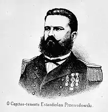 Estanisláo Przewodowski was born in Salvador on 22 October 1843, the son of engineer André Przewodowski, a Polish immigrant from the Russian Empire.[1][2] Completing the humanities course, he joined the Navy, obtaining the title of aspirant on 23 February 1858, after which he made instructional trips to Europe and the United States. He was promoted to second lieutenant on 2 December 1862, first lieutenant on 20 July 1864 and captain lieutenant on 2 December 1869.[1]