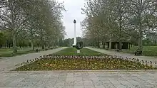 Belgrade New Cemetery is located in Belgrade's municipality of Zvezdara. Part of the cemetery's complex, the Cemetery of Belgrade Liberators built in 1954, contains graves of 2,944 National Liberation Army soldiers and 961 Red Army soldiers and the mass grave of 1,381 National Liberation Army soldiers and 711 Red Army soldiers who died during the 1944 Belgrade Offensive.[10]
