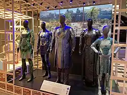 In October 2021, Lexus released a commercial promoting the film and its Lexus IS 500 sports sedan starring Nanjiani as Kingo, with frequent MCU directors Joe and Anthony Russo guiding its development and Framestore working on the visual effects.[96] Lexus created ten concept cars based on the ten Eternals characters from the film.[97] The LS 500h and NX are featured in the film.[96] Beginning on November 20, 2021, select costumes from the film were part of the Futures exhibit at the Smithsonian Institution's Arts and Industries Building, which ran through July 2022. Behind-the-scenes content looking at the evolution of the film's visuals as well as an augmented reality experience were also included in the exhibit.[98]