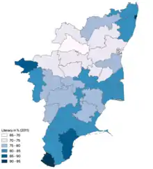 Native speakers of Tamil make up 89.43% of the total population of Tamil Nadu and 6.32% of the total population of India making it the fifth-most spoken language in the country.