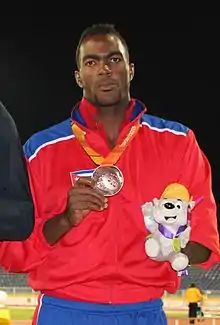 Ettiam Calderón Lastres (born October 24, 1984) is a Paralympic T46/47/F46/47 track and field athlete from Cuba. He competed in sprint and long jump events at the 2008, 2012 and 2016 Olympics and won a bronze medal in the 200 m sprint in 2008, finishing fourth in the long jump. Calderón has no left arm below the elbow.[2][1]