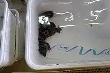 The Turkmenistan eyelid gecko or Turkmenian eyelid gecko (Eublepharis turcmenicus) is a ground-dwelling lizard native to Turkmenistan and northern Iran.[2] It inhabits rocky and stony foothills and slopes at elevations up to 1,000 m (3,300 ft) above sea level. It is oviparous, typically laying clutches of two eggs.[1] Mainly insectivorous, it may also eat smaller vertebrates. Like many other lizards has the ability to shed its tail (autotomy).