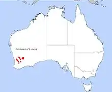 Despite persisting as very small populations, this species does not seem to exhibit effects of inbreeding depression.[13] Associated species include Eucalyptus crucis, Eucalyptus loxophleba, Allocasuarina huegeliana and Acacia lasiocalyx.[14]