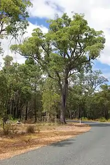 Jarrah is regarded as one of the six forest giants found in Western Australia; the other trees include; Eucalyptus gomphocephala (Tuart), Eucalyptus diversicolor (Karri), Eucalyptus jacksonii (Red Tingle), Corymbia calophylla (Marri) and Eucalyptus patens (Yarri).[18][19]