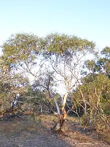 Eucalyptus pauciflora subsp. pauciflora, commonly known as snow gum, cabbage gum or white sally[2] is a tree or mallee that is endemic to eastern Australia. It has smooth bark, glossy green, lance-shaped, curved or elliptical leaves, flower buds in groups of between nine and fifteen, white flowers and cup-shaped, hemispherical or conical fruit.