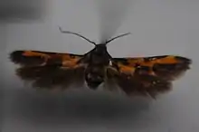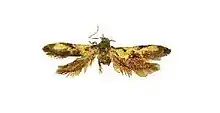 Euclemensia woodiella, the Manchester tinea[1] (or Manchester moth, since it does not belong to the Tineoidea), is a yellow and brown British moth. It is regarded as extinct, and is known from only three museum specimens, one of which is held by the Manchester Museum,[2] one by the Natural History Museum, London, and the type, which is in the Curtis Collection at Museum Victoria.