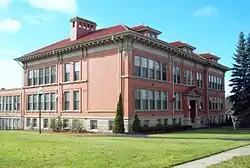 Euclid Avenue School is a historic school building located at Jamestown in Chautauqua County, New York. It is a two-story, rectangular brick structure built in 1911 and enlarged in 1920 and 1956. The structure combines Neoclassical features and proportions with elements of the Spanish Mission and American Craftsman styles in an eclectic composition that is characteristic of early 20th-century architectural fashion.[2]
