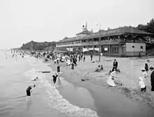Designed to be a family-friendly park, the Humphreys would not admit anyone who had consumed intoxicating beverages at a bar directly across the street from the entrance to the park.[1] Signs throughout the park instructed that only children were permitted to wear shorts, because the Humphreys thought that proper dress would promote a family-friendly atmosphere.[1] At one point the park advertised that it would "present nothing that would demoralize or depress," and that visitors would "never be exposed to undesirable people",[3] including African Americans.[2] In August 1910, the park was the site of an exhibition flight by aviator Glenn Curtiss from Euclid Beach to Cedar Point and back.