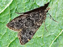 These rather inconspicuous moths are usually greyish-brownish. Their labial palps are elongated and project straightly, This species is very similar to Eudonia lacustrata (Panzer, 1804).[6]