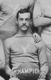 Eugene Vanvoy Baker (c. 1854 – October 16, 1942)[1] was a pioneer college football player and coach for the Yale Bulldogs of Yale University.[2][3][4] Playing alongside Walter Camp,[5][6] he was captain of the 1876 and 1877 teams, which includes the first Yale team to defeat Harvard.[7][8] A plaque in Yale's trophy room read "In Recognition of the Services of Eugene V. Baker, '77 The Organizer and Captain of Yale's First Victorious Football Team This Room Has been Furnished and The Tablet Placed Here By His Classmates 1893." He later became a major land developer in California, first as a bookkeeper for the San Gabriel Valley Land & Water Company.[7][9] Photographs of the Baker family is in the Hargrett Library of the University of Georgia Libraries."[10][11]