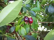 Eugenia involucrata, the Cherry of the Rio Grande, is an evergreen shrub native to Brazil which bears small fruits that are dark red to purple in color and have a sweet cherry-like flavor. They are hardy to 20F when mature, though younger plants should be protected from frosts. [2]