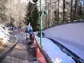 The track played a key role in improving bobsleigh safety when West Germany's Toni Pensperger was killed during the four-man event at the 1966 world championships.[6] Because of Pensperger's death, the world championships did not take place at the track until safety improvements were made satisfactory to the Fédération Internationale de Bobsleigh et de Tobogganing (FIBT). This was not until 1981, though the death of American bobsledder James Morgan during the four-man event on February 8 led to track officials shortening the course to its current configuration.[7] The week following the 1981 championships, the track was filmed as part of the movie For Your Eyes Only; one of the stuntmen involved, Paolo Rigon, was killed during the first day of filming.[8][9]