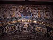 The most striking feature of the basilica are its mosaics, mostly with gold grounds, dating from the 6th century.[2]